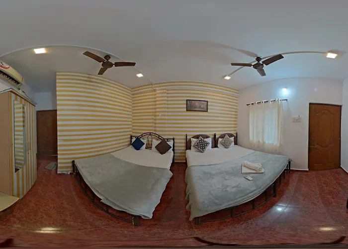 Die Pension ist auch ungefähr 3 km vom Curlies Beach Shack entfernt. Von hier aus sind es nur 10 Gehminuten zum Zentrum von Calangute. Auch Mojo Play Zone ist in ca. 500 Meter Entfernung vom Esther Guest House zu finden. Die Bushaltestelle Calangute Beach liegt in etwa 10 Gehminuten Entfernung vom Hotel, während der Baga Strand in ca. 25 Minuten zu Fuß zu erreichen ist.